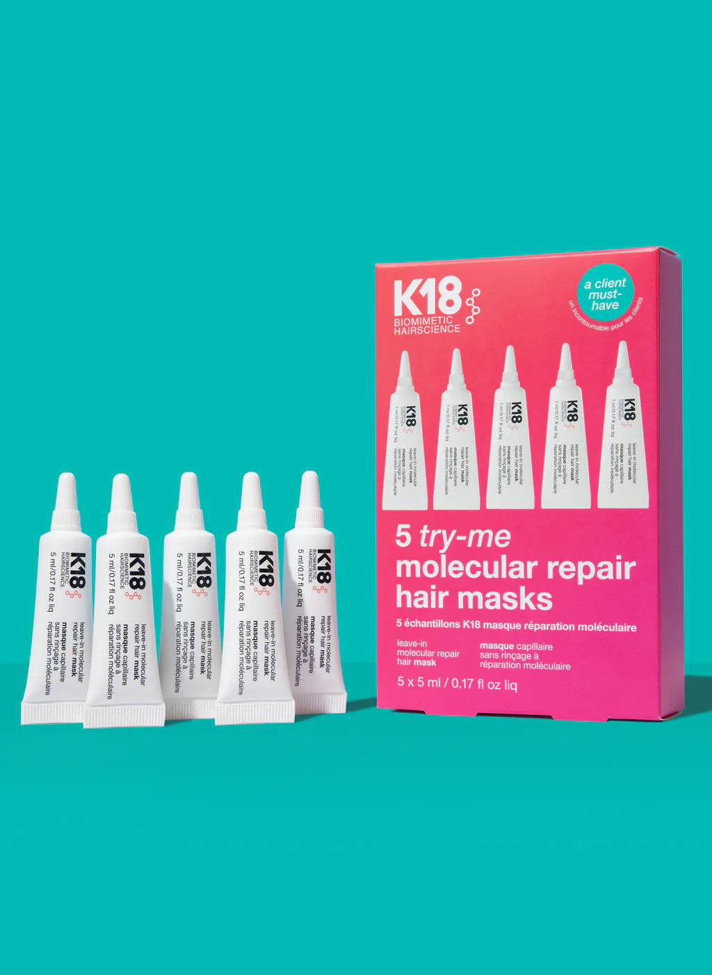 Send every client home with a trial-sized molecular repair hair mask gift. This convenient 5-pack allows clients to continue hair repair between appointments for better service results at their next visit.